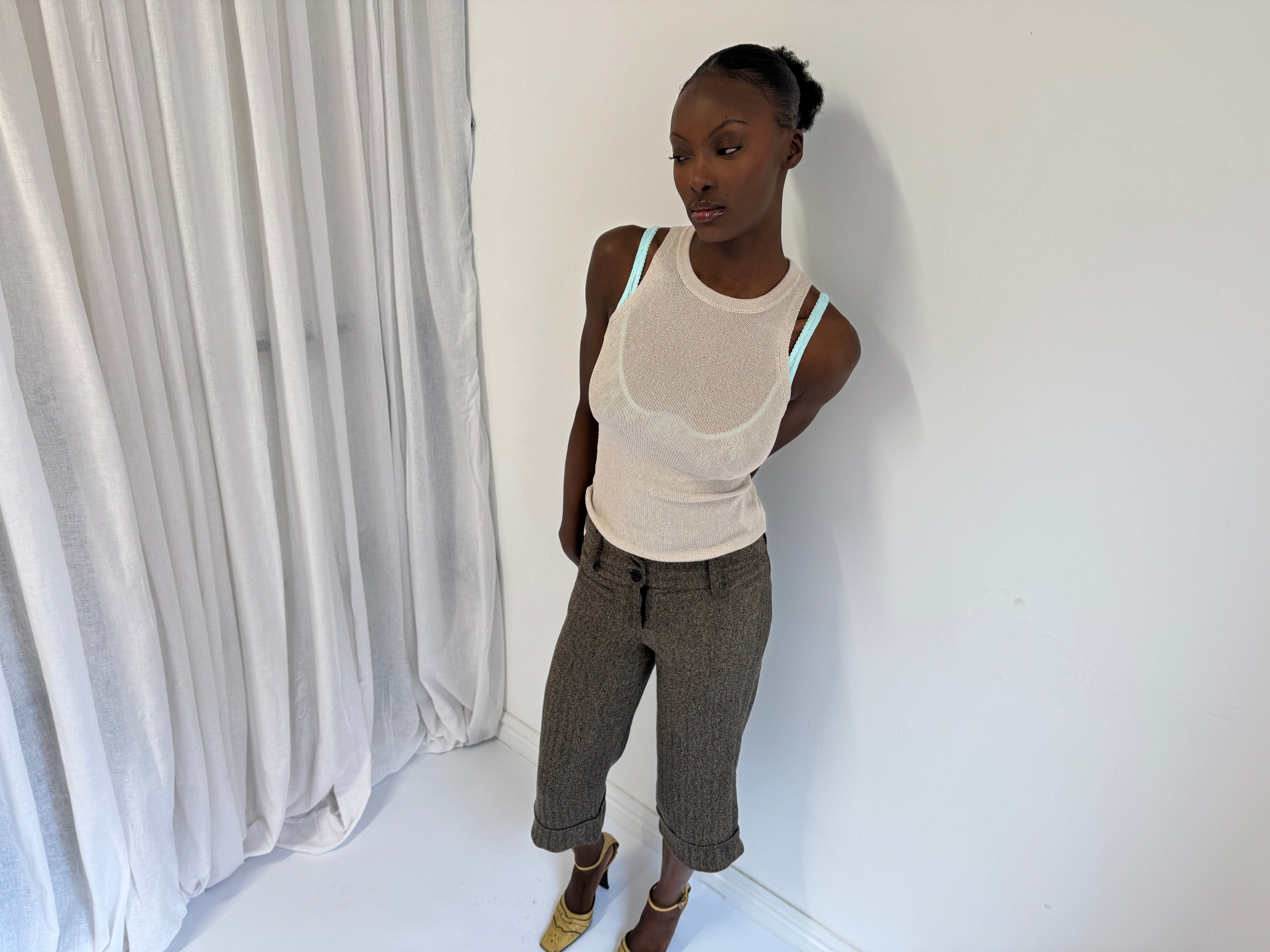 Product measurements are taken when the garment is laid flat. Fits true to size. Please note the tweed version of our saddle collection does not have stretch, so fits a little differently to the brown herringbone styles. If you have curvier hips, we recommend sizing up.