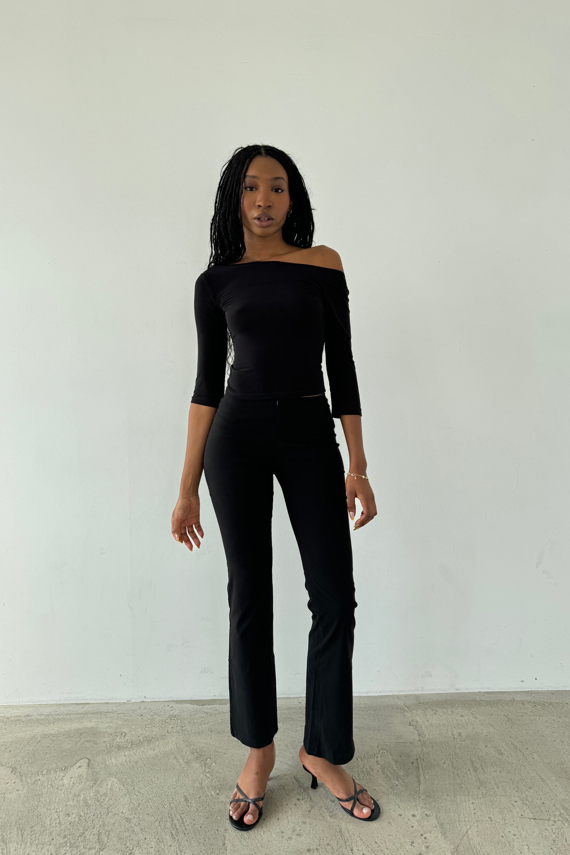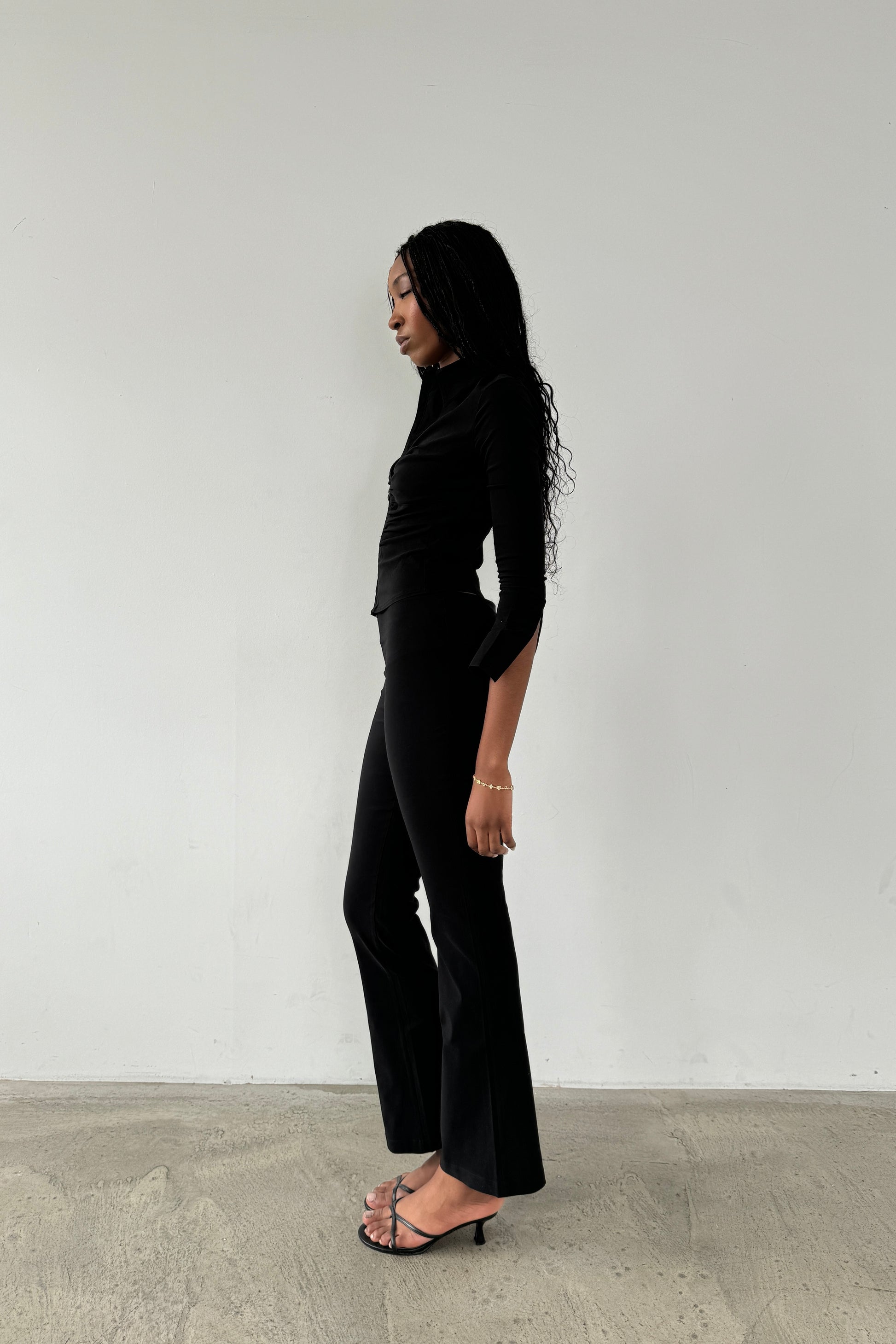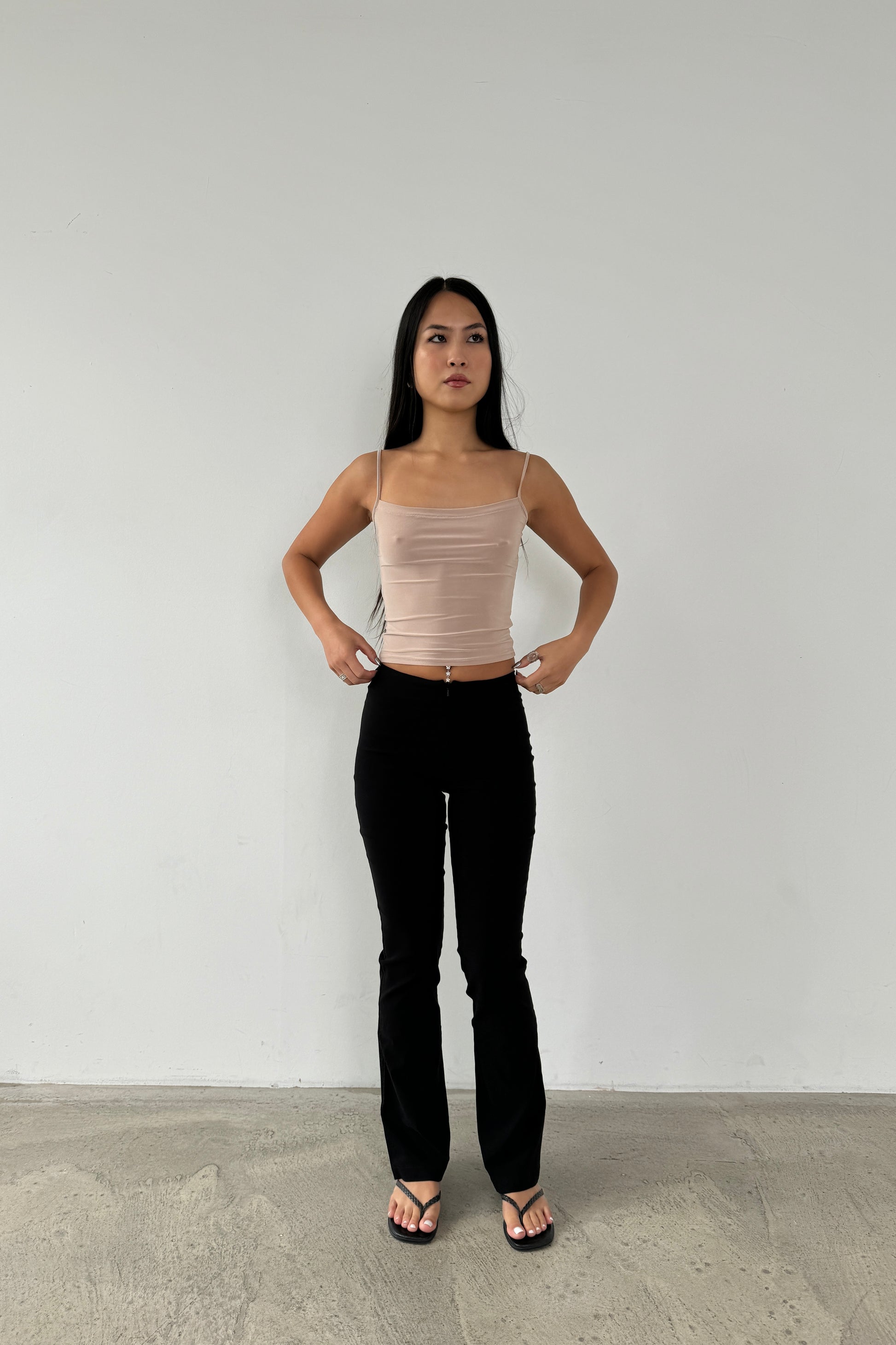Our Chloe trousers run a little big so if you are in between sizes, we recommend sizing down due to stretch. They fit the same as our slim fit capris .